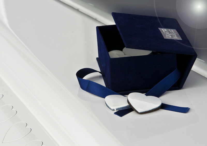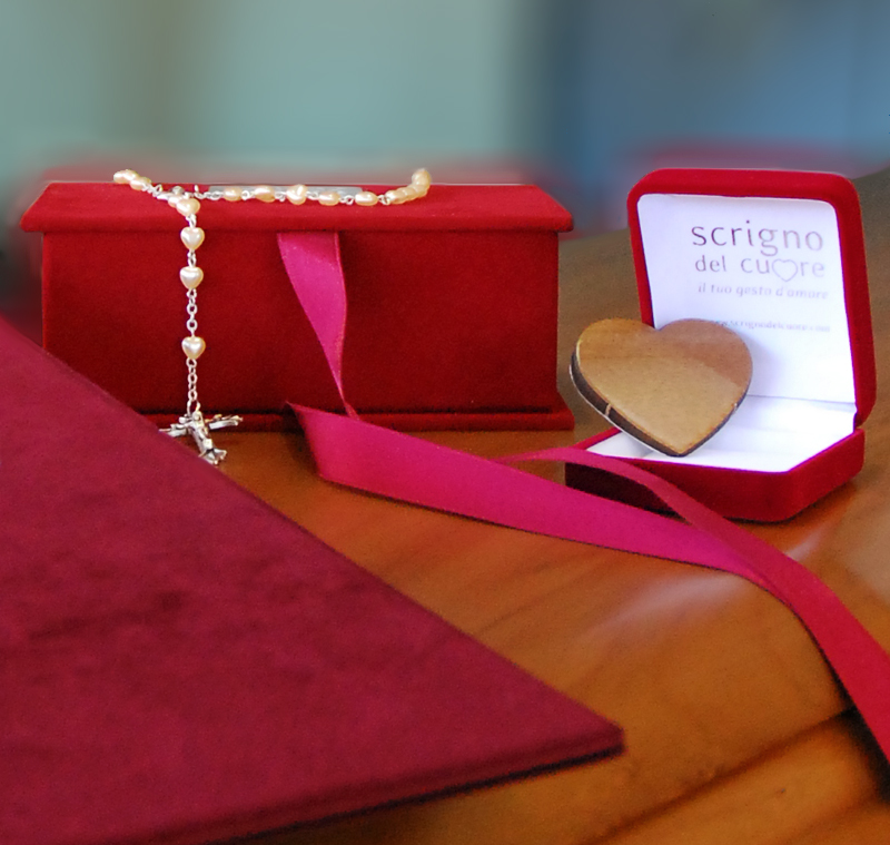 Disponibile, come anche gli astucci, nelle due versioni di colore blu e rosso, serve per contenere i cuori di legno eventualmente rimasti sullo Scrigno del Cuore, al termine della cerimonia.